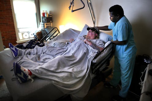 Those caring for vulnerable older adults are often themselves vulnerable. About 90% of the home care workforce are women who have not completed college. Nearly 60% belong to racial or ethnic minority groups with a disproportionately high rate of illness and death from COVID-19. One in five lacks health insurance. And only one-third of home care workers are employed full-time. The median age for home care workers is 49 years of age; they are paid a median of US$12 an hour; and more than 1 in 4 have no health coverage themselves.
