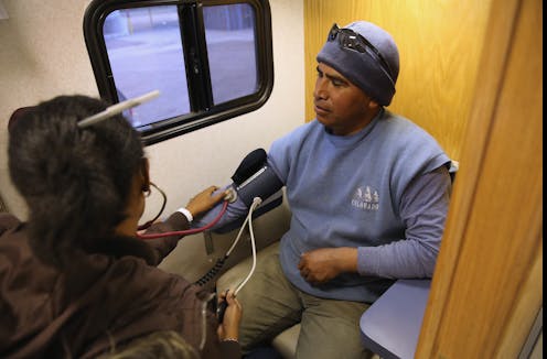 I was standing in the middle of an air-conditioned room in April at a COVID-19 testing site for Latino farmworkers and their families in the eastern part of Southern California’s Coachella Valley. Outside was an ever-increasing line of symptomatic patients, individuals who either reported having a cough, fever or difficulty breathing, or who had been in contact with someone with the virus in the past two weeks. They were all waiting to get tested.