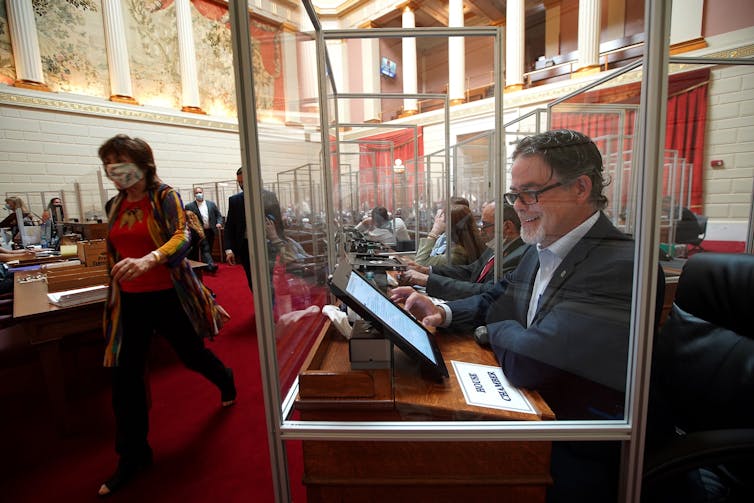 As a respiratory virus, SARS-CoV-2 is transmitted mainly through droplets that leave the mouth and nose as a person talks, sneezes, coughs or exhales. It thrives in environments where there are lots of people in enclosed spaces – especially if they are laughing, talking, singing or otherwise coming into close contact. It thrives physically in the same settings where we thrive socially.