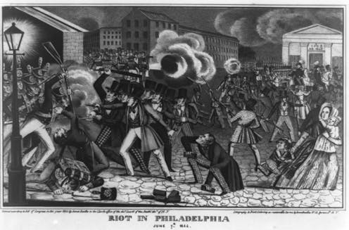 Big cities, like New York or Philadelphia, were periodically the stage of street riots, some persisting for days and involving hundreds of people.