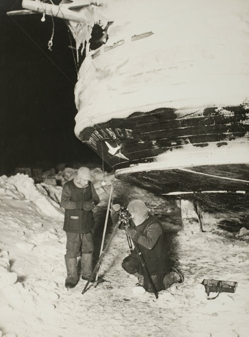 But they never even landed on Antarctica. The ship got stuck in sea ice in the Weddell Sea in January 1915, forcing the men off the ship into tents pitched on the frozen ocean nearby. The force of the ice slowly crushed the Endurance, sinking it 10 months later, and kicking off what would become an incredible – and almost unbelievable – saga of survival and navigation by Shackleton and his crew.