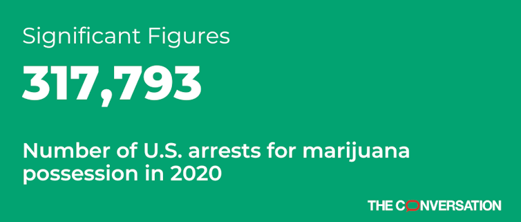 There are some caveats to consider when looking at 2020’s figures. Safety measures taken to limit the spread of COVID-19 – like lockdowns, school closures and work-from-home mandates – resulted in fewer police-citizen contacts. The number of arrests for all drugs fell by 25% compared with 2019, even though no other drugs were legalized that year. Still, arrests for marijuana declined at an even steeper rate.
