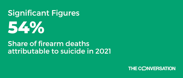 More than half – 54% – of all firearm deaths in the United States in 2021 were attributable to suicide, according to February 2023 data from the Centers for Disease Control and Prevention.