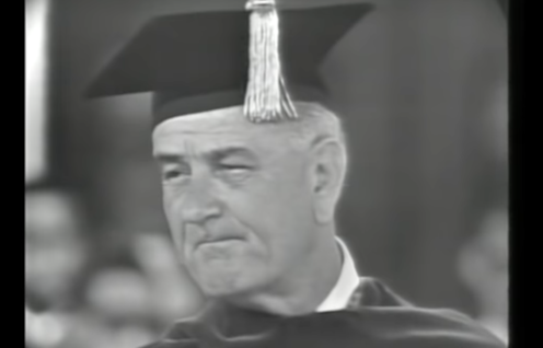 But Johnson was determined to achieve his goal of racial equality. During his commencement address, Johnson heralded the passage of the 1964 Civil Rights Act that he signed into law on July 2, 1964, and prohibited workplace discrimination. He also promised passage of the Voting Rights Act that would ban discriminatory voting practices. Johnson signed that into law on Aug. 6, 1965.