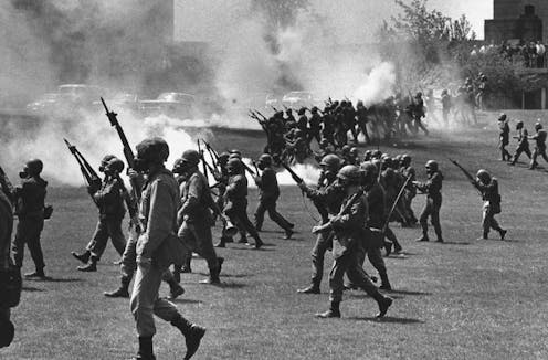 The confrontation escalated into violence: Troops opened fire on the demonstrators, killing four students and wounding nine others, including one who was paralyzed for life.