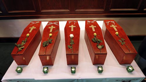 After forensic examinations of the remains, five of the skeletons were reburied during a ceremony at West Laurel Hill Cemetery in Bala Cynwyd in 2012. My team determined the identities of two of the deceased – 18-year-old John Ruddy from County Donegal and 29-year-old Catherine Burns, the daughter of one of the workers, from County Tyrone – and their remains were returned to their home counties in Ireland in 2013 and 2015.