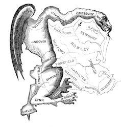 The word “gerrymandering” derives from an 1812 political cartoon ridiculing a map drawn under Massachusetts Governor Elbridge Gerry. The cartoon suggested that one district in Boston’s North Shore was shaped like a menacing reptile. (Gerry + Salamander = Gerrymander.)