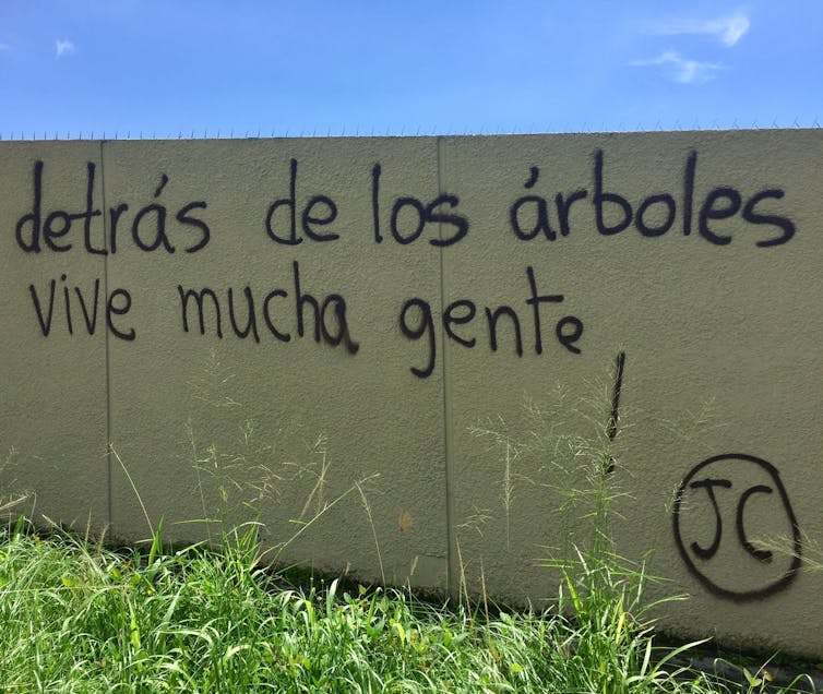 Hay un grafiti que ahora se ve por la isla, firmado por alguien que se identifica como “JC”. A los puertorriqeuños nos recuerda, casi con esperanza, que “Detrás de los árboles vive mucha gente”.