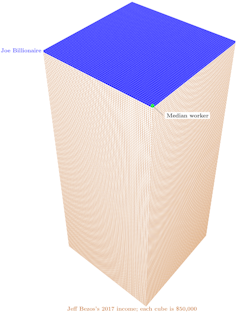 In 2017, Jeff Bezos raked in 150 times more than Joe Billionaire – the equivalent of 600,000 median incomes.