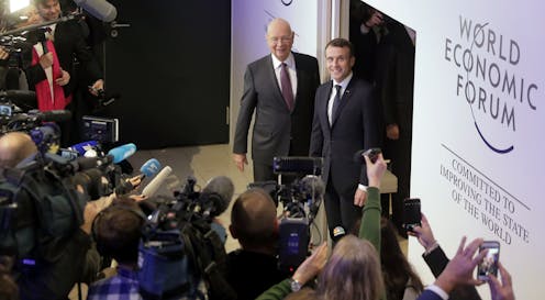 Switching to French, Macron made a very different argument about the global economy. Economic growth, he stated, can never be an end in itself. A world where all nations compete against one another has led to an unsustainable Darwinian struggle, a race to the bottom. Short-term profits accrue to the few. The distribution of wealth in the world is increasingly unjust.