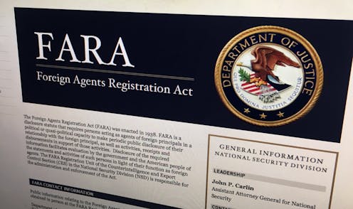 The act requires “agents of foreign principals in a political or quasi-political capacity to make periodic public disclosure” of that relationship. Activities taken as a result of it must also be disclosed.