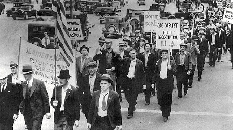 In 1934, San Francisco longshoremen – who were non-union since employers had crushed their union in 1919 – reorganized and led a coast-wide “Big Strike.”