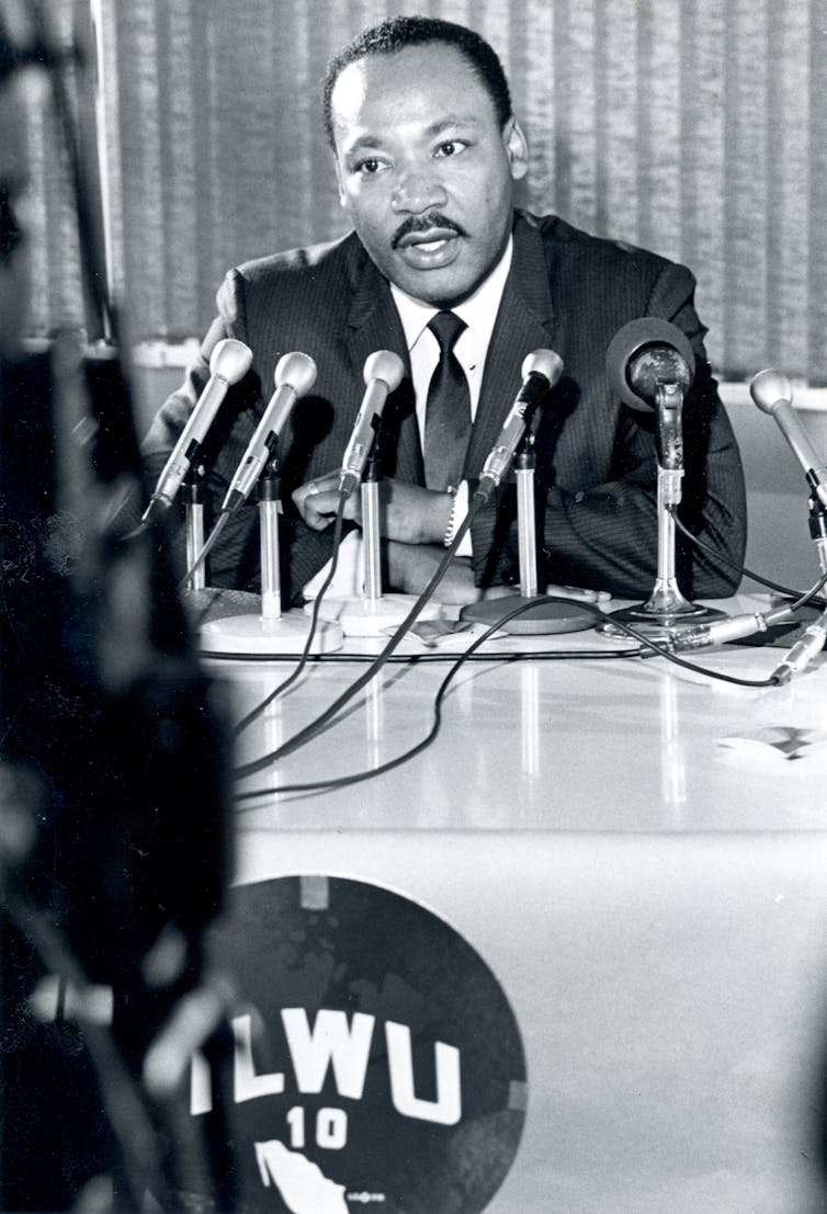 King addressed these dockworkers, declaring, “I don’t feel like a stranger here in the midst of the ILWU. We have been strengthened and energized by the support you have given to our struggles. … We’ve learned from labor the meaning of power.”