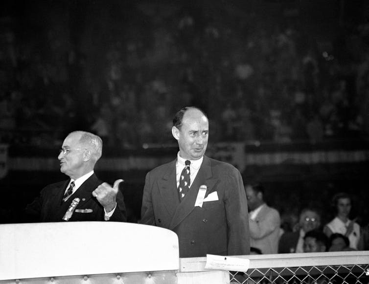 On the Democratic side, despite encouragement from President Truman, Adlai Stevenson repeatedly rejected efforts to draft him for the nomination, until his welcoming address at the national convention in July 1952 – just a few months before the general election. His speech excited the delegates so much that they put his name in the running, and he became the nominee.
