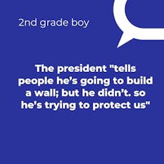 In 2017, a fourth-grade boy said the president “lies, (is) destroying our country.”