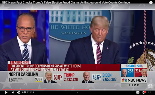When President Trump claimed in a press conference that the election was being stolen from him, three major TV networks cut off their coverage. A media scholar asks if this is a turning point.
