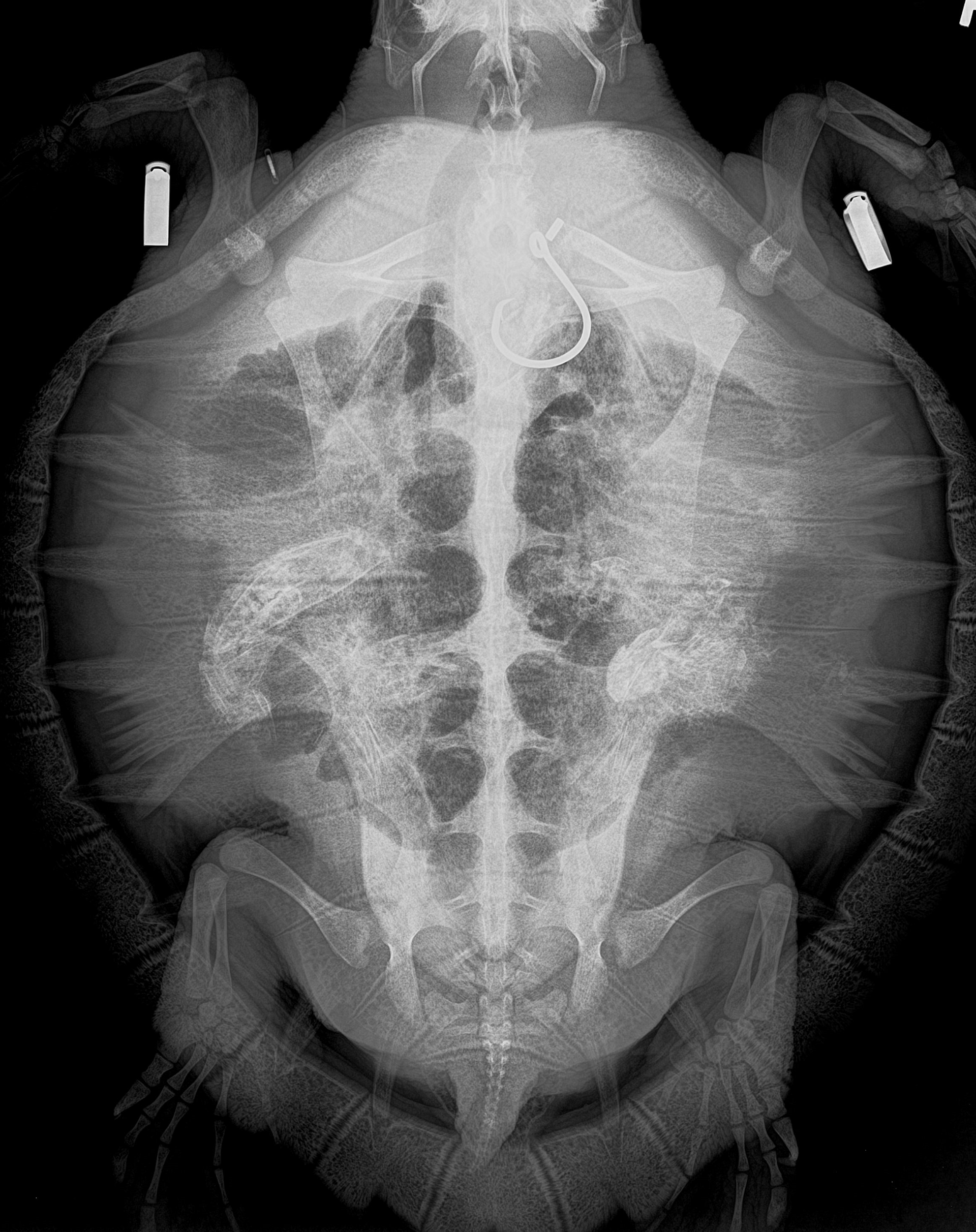 That summer afternoon, the sea turtle stranding team transported Toni to the veterinary hospital nearby at IMMS. Once at the hospital, Debra and the veterinary team took an X–ray and found that the hook was lodged deep in the turtle’s stomach. Getting it out would not be easy. Debra then called John to come to Gulfport to try to remove the hook with an endoscope.
