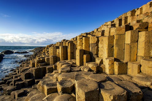 What about the amazing patterns of the basalt columns at Giant’s Causeway? These formed 50 million to 60 million years ago, as lava – hot rocky fluid from deep underground – rose to the Earth’s surface and began to lose heat. The cooling caused the top layer of basalt to contract. The deeper, hot layers resisted this pulling, creating cracks in the top layer.