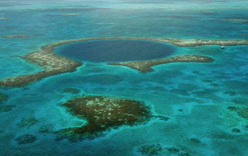 They tend to have deep vertical walls that can trap sediments – including sand transported by strong hurricanes. Fortuitously, deep blue holes often have little oxygen at the bottom, which slows decay, helping to preserve organic matter in the sediment through time.