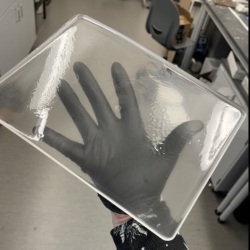 The way we make these plastics is relatively simple when compared with how other types of plastics are made – we simply mixed acetone and a little bit of an eco-friendly catalyst into store-bought superglue. Once this mixture dries, it produces a solid, glassy plastic made up of long polymer chains.