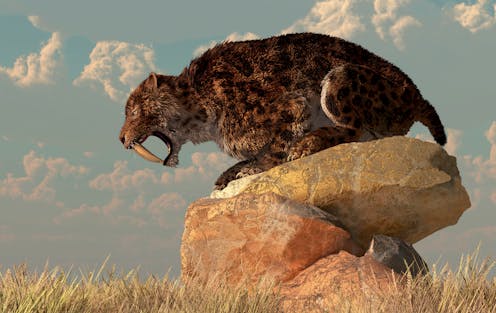 These dates mean sabertooths and the first people to infiltrate these places – Clovis foragers in North America and Fishtail foragers in South America – shared the landscape for a short period of time. People probably chanced upon sabertooth tracks, scat and kills now and again. Maybe a few lucky people observed the magnificent animal going about its life. But neither knew what the future had in store.