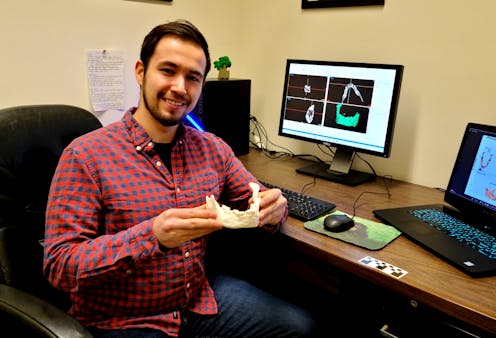 Working with Spanish paleoanthropologists and archaeologists, we took another look at what species the fossil might represent. We relied on a CT scan to virtually reconstruct damaged or missing portions of the mandible and generated a 3D model of the complete fossil. Then, we studied its overall shape and distinctive anatomical features, comparing it to H. sapiens, Neandertals and other earlier human species.