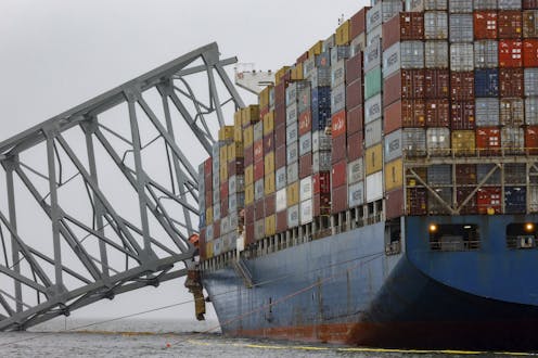 The bridge collapse happened so fast that it left little time for the work crews on the bridge to escape. Civil engineers like me have been paying attention to this disaster, because we want to find ways to make infrastructure like these large bridges more resilient. For a bridge this large to collapse would require a catastrophic collision force. But using some basic physics principles, we can actually estimate approximately what that force was.