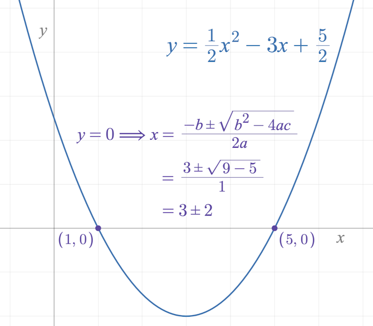 You might remember learning about the quadratic formula to figure out the solutions to these equations and find where the plot crosses the x-axis, too.
