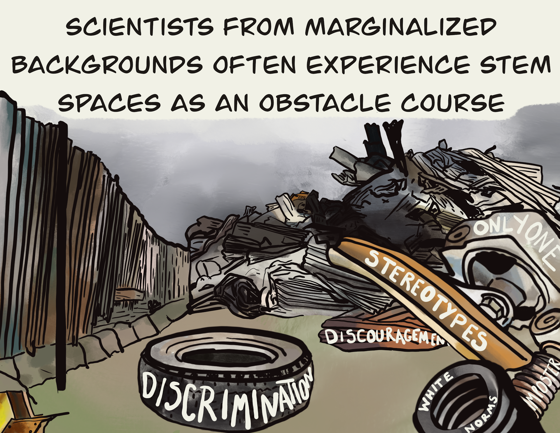 Instead of disseminating science information through traditional methods that leave little room for dialogue, these researchers seek to bring science back to their communities. This is in part because scientists from historically marginalized backgrounds often face hostile environments in STEM, including discrimination, stereotypes about their competence, isolation and a lack of representation in their fields. Many of the researchers we talked to described feeling pressure to hide aspects of their identities, being seen as the token minority, or having to constantly prove they belong. These experiences reflect well-documented structural barriers in STEM that shape who feels welcome and supported in scientific environments.