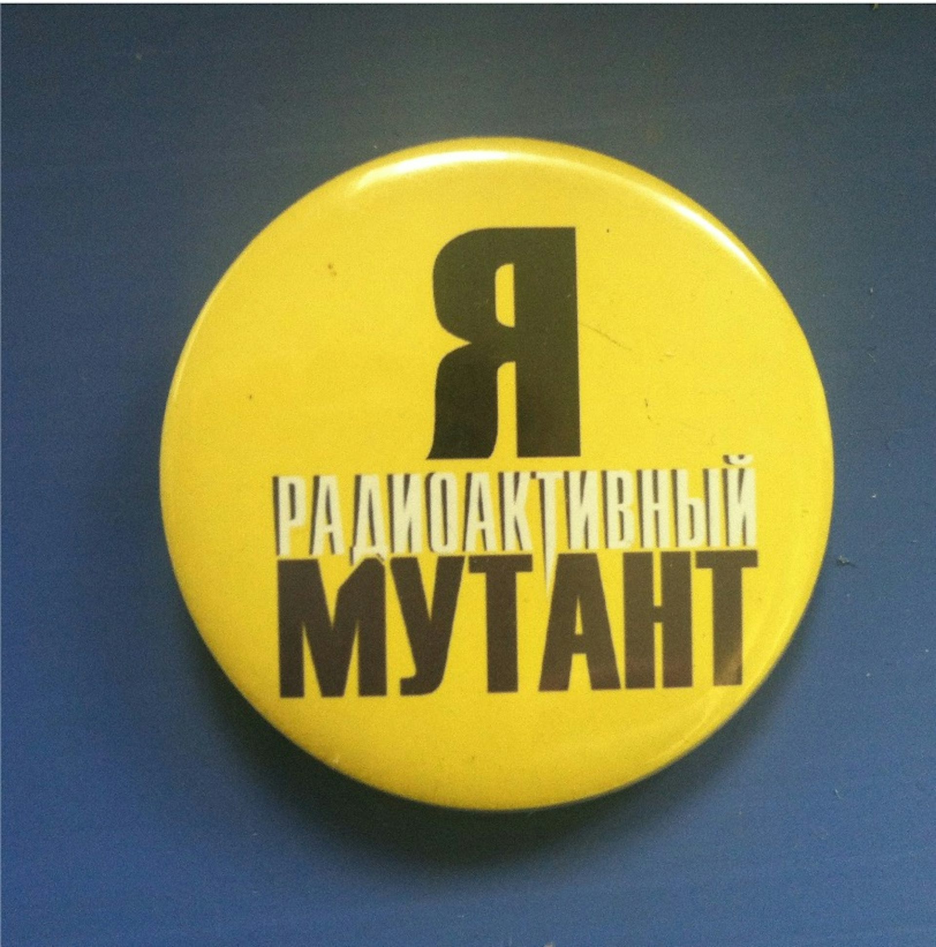 These kinds of trinkets were not particularly surprising to me. You can find them in many places. But a bright yellow button about the size of my palm stopped me in my tracks: “I am a radioactive mutant” (“Ya radioaktivnyy mutant”), read its simple message.