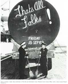 To be specific, HOBO 28’s nuclear weapons were actually hydrogen bombs. As I explain in my book, “Strange Glow: The Story of Radiation,” a hydrogen bomb (or H-bomb) is a second-generation type of nuclear weapon that is much more powerful than the two atomic bombs dropped on Hiroshima and Nagasaki. Those two bombs were “fission” bombs – bombs that get their energy from the splitting (fission) of very large atoms (such as uranium and plutonium) into smaller atoms.