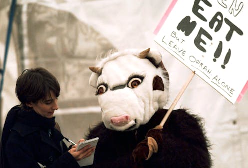 A year and a half earlier, rancher-turned-animal-rights activist Howard Lyman appeared on Winfrey’s program. He claimed the American beef industry was giving cattle feed that contained remains of processed cattle. This practice, no longer legal in the U.S., had been banned by the British government in 1996 due to the belief it had led to the 1980s outbreak in Great Britain of bovine spongiform encephalopathy.