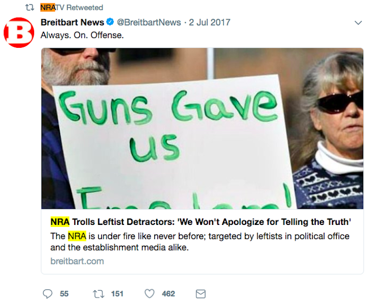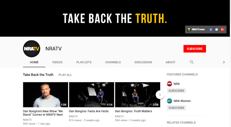 NRA TV is not merely a platform for promoting Second Amendment rights or engaging gun enthusiasts. As a researcher of online extremism, I’d contend it has become one of the web’s most incendiary hotspots for stoking outrage at liberal America, attacking perceived enemies like Black Lives Matter and the Women’s March, and promoting the message that America is under threat from the so-called “violent left” – an especially alarming term, coming from a gun lobby.