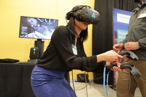 If wearing a virtual reality or augmented reality headset is ever to become commonplace, hardware manufacturers will need to figure out how to make the devices small and lightweight while ensuring their images are sharp and clear. Unfortunately, this task faces a key limitation in optics: Conventional lenses are curved glass objects that focus different wavelengths of light in different locations, which would show viewers blurry images. As a result, pretty much anything with a lens – from tiny smartphone cameras to large-scale projectors – uses multiple lenses, which add weight, thickness and complexity, increasing cost.