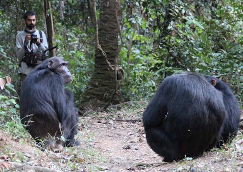 Do chimpanzee talk to each other? Scientists follow and record chimpanzees in the wild to find out – and to fill in details about how human language might have evolved.