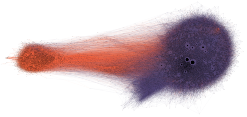 In fact, in our research we have found that it is possible to determine the political leanings of a Twitter user by simply looking at the partisan preferences of their friends. Our analysis of the structure of these partisan communication networks found social networks are particularly efficient at disseminating information – accurate or not – when they are closely tied together and disconnected from other parts of society.