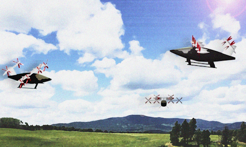 We looked at how much energy a small battery-powered aircraft capable of vertical takeoff and landing would need. These are typically designed to launch straight up like helicopters, shift to a more efficient airplane mode by rotating their propellers or entire wings during flight, then transition back to helicopter mode for landing. They could be an efficient and economic way to navigate busy urban areas, avoiding clogged roads.