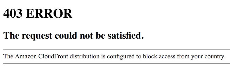 What the internet looks like to users in the U.S. can be quite different from the online experience of people in other countries. Some of those variations are due to government censorship of online services, which is a significant threat to internet freedom worldwide. But private companies – many based in the U.S. – are also building obstacles to users from around the world who want to freely explore the internet.