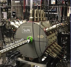 Nuclear physicists have dedicated equipment - detectors - that can observe these newly formed nuclei and the radiation they emit, and study their properties. For example, at the National Superconducting Cyclotron Laboratory where I work, my group has developed an extremely efficient gamma ray detector we called SuN.