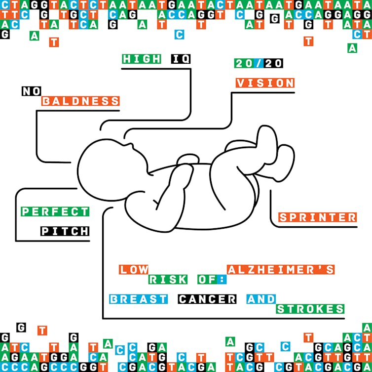 Most DNA mutations do nothing else other than cause the disease, but DNA variations may play a role in many diseases and traits. Take variations in the MC1R “red hair” gene, which not only increases the chance that your child will have red hair, but also increases their risk of skin cancer. Or variations in the OCA2 and HERC2 “eye color” genes that are also associated with the risk of various cancers, Parkinson’s and Alzheimer’s disease. To be sure, these are statistical associations, reported in the scientific literature, some may be confirmed; others may not. But the message is clear: Editing DNA variations for “desirable” traits may have adverse consequences, including many that scientists don’t know about yet.