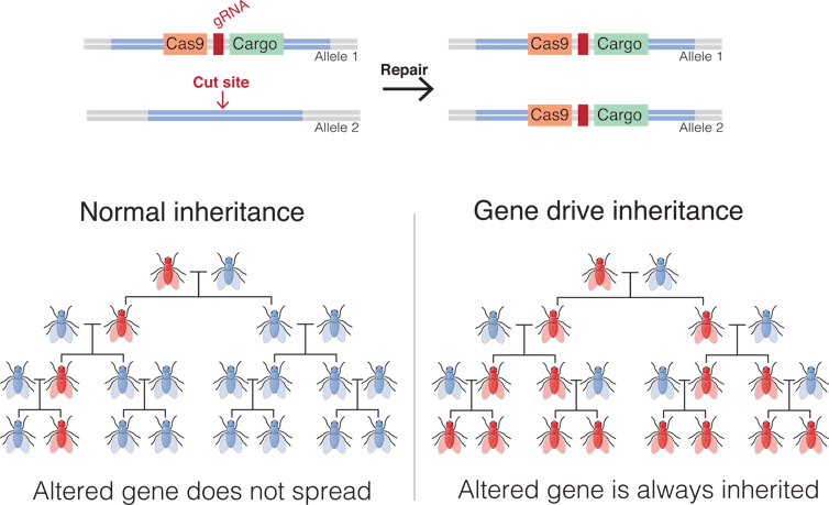 Gene drives are inherited by more than 50 percent of the progeny. This gives them the ability to progressively increase the frequency of a trait over subsequent generations, which is an advantage over the potential use of other GM mosquitoes.