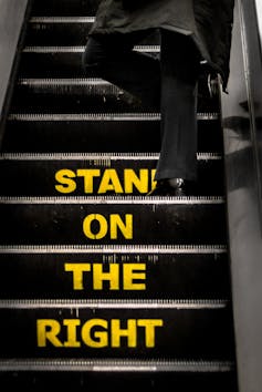 So when people approach an escalator, they’ll often just do what the person immediately ahead of them is doing. If the person in front of them walks, they walk. If the person in front of them stands, they stand. All it takes is someone to start the trend.