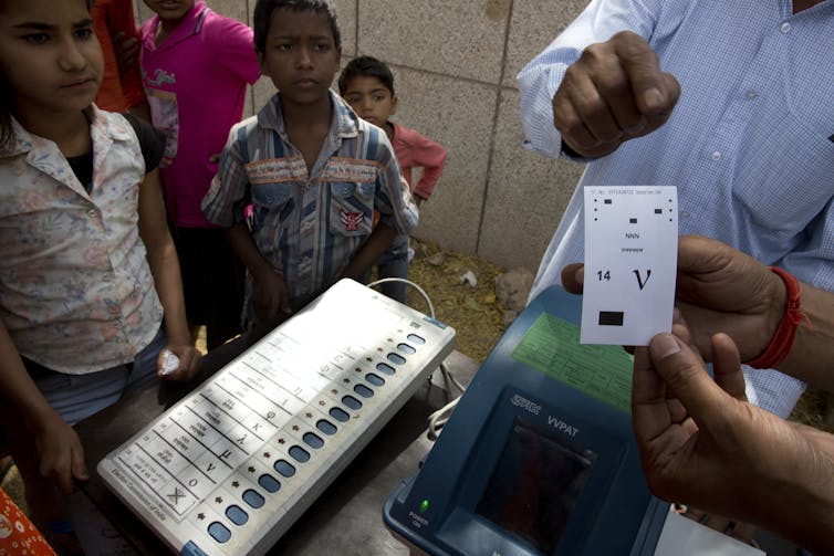 I have been working on the security of electronic voting systems for more than 15 years, and, along with other colleagues, have been interested in understanding how a nation can tally that many votes cast over such a long period. India uses a domestically designed and manufactured electronic voting machine – as many as 4 million of them at 1 million polling places, at least some in extremely remote locations.