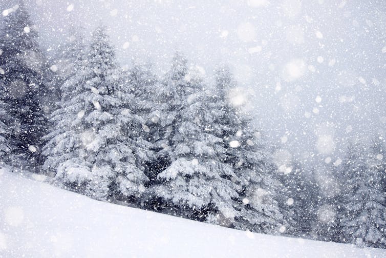 No matter the species, at midlatitudes, where the snow flies in winter and growing seasons are generally mild and favorable, trees need strategies to make it through. Some recreate a crown of leaves each spring. Evergreens equip their needles and branches with features necessary to survive winter and thus live to see another spring – and, for some, many springs thereafter.