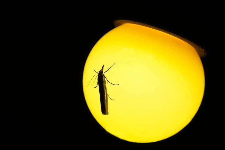 If you would like to help insects, you can use yellow or red light bulbs on the outside of your house. These lights attract fewer insects. Motion sensor lights are helpful, too, because they turn on only when needed. As we explore how light pollution is affecting insects, our research can inform local and national governments on how to manage light to protect the natural world.