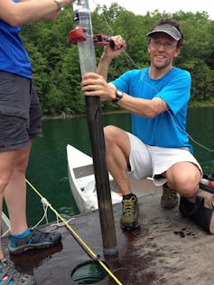 In the field of paleo-ecology, researchers take advantage of the fact that, over time, the bottoms of lakes and ponds fill up with mud. Using a hand-driven device, scientists can collect a cylindrical core of the sediment and then use radiocarbon dating to determine the age of the mud at different depths. Over the last century, scientists have collected sediment cores from hundreds of lakes around the world, enabling them to reconstruct past environments and ecosystems.