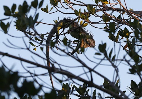 Green iguanas are an invasive species that seem to be spreading and proliferating in Florida. Used to warmer temps, they switch into torpor mode when the mercury drops.