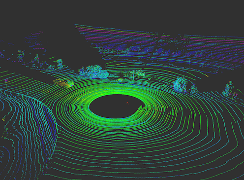 LiDAR-based perception systems have two components: the sensor and the machine learning model that processes the sensor’s data. A LiDAR sensor calculates the distance between itself and its surroundings by emitting a light signal and measuring how long it takes for that signal to bounce off an object and return to the sensor. This duration of this back-and-forth is also known as the “time of flight.”