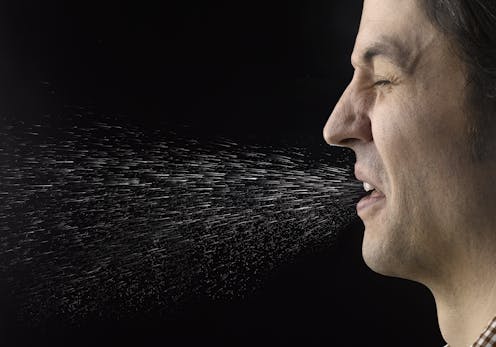Similarly, in humans, small sheets and strands of liquid – mucus – often stretch across portions of the airway. This most often occurs in locations where the airway opens and closes again and again. That happens deep within the lungs as the bronchioles and alveolar sacs expand and contract during breathing, within the larynx as the vocal folds vibrate during speech, or at the mouth, as the tongue and lips move while talking. The airflow produced by breathing, speaking and coughing breaks apart these sheets of mucus, just like blowing the soap bubble.