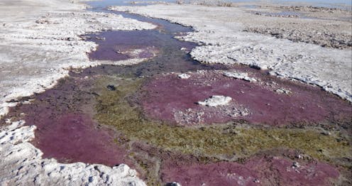 So we joined a surveying expedition of Chilean and Argentinian scientists to look for living stromatolites in the extreme conditions of the High Andes. In a small stream deep in the Atacama Desert, we found a big surprise. The bottom of the channel was bright purple and made of stromatolite-building microbial mats that thrive in the complete absence of oxygen. Just as the clues we’d found in ancient fossils suggested, these mats use two different forms of arsenic to perform photosynthesis and respiration. Our discovery offers the strongest evidence yet for how the oldest life on Earth survived in a pre-oxygen world.